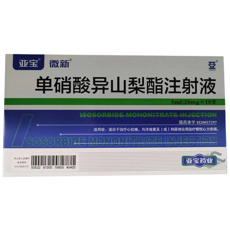 会员可见(带量采购)单硝酸异山梨酯注射液规格: 5ml:20mg 序:100厂家: 亚宝药业集团股份有限公司效期:2027-05 件装量:1000中包装: 10 库存:充裕-+