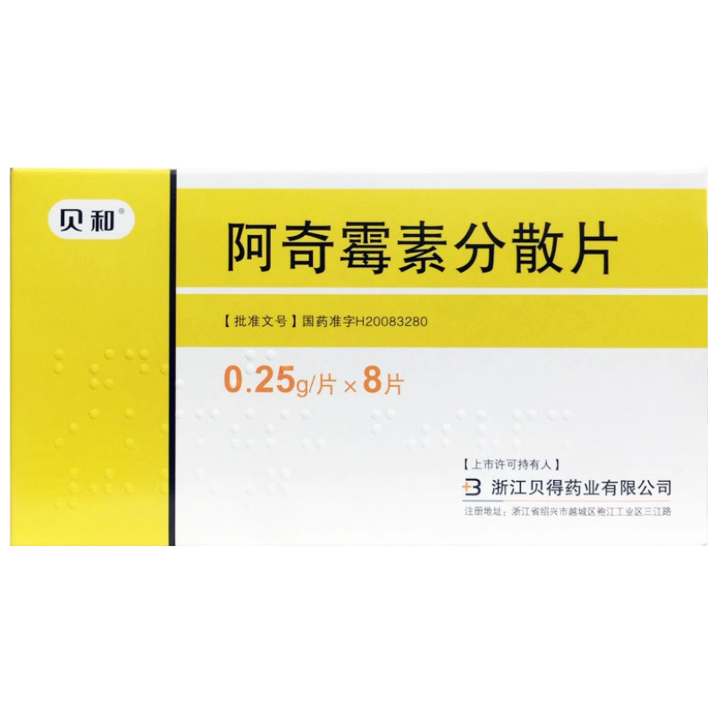会员可见阿奇霉素分散片浙江贝得药业有限公司规格:0.25g*8片效期:2027-10-12 件装量:600库存:充裕 中包装:1