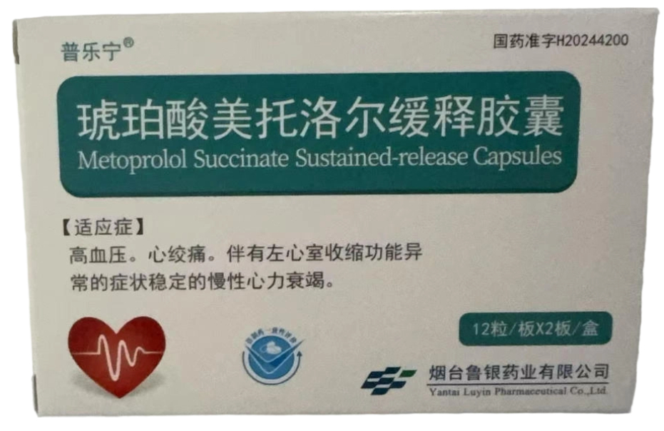 会员可见琥珀酸美托洛尔缓释胶囊烟台鲁银药业有限公司规格:47.5mg*24粒效期:2026-07-17 件装量:300库存:充裕 中包装:10