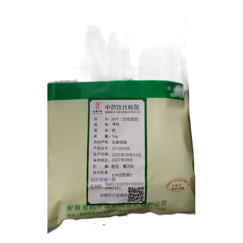 会员可见冰片(合成龙脑)安徽亳药千草中药饮片有限公司规格:1千克/袋效期:2027-09 件装量:9999库存:充裕 中包装:1