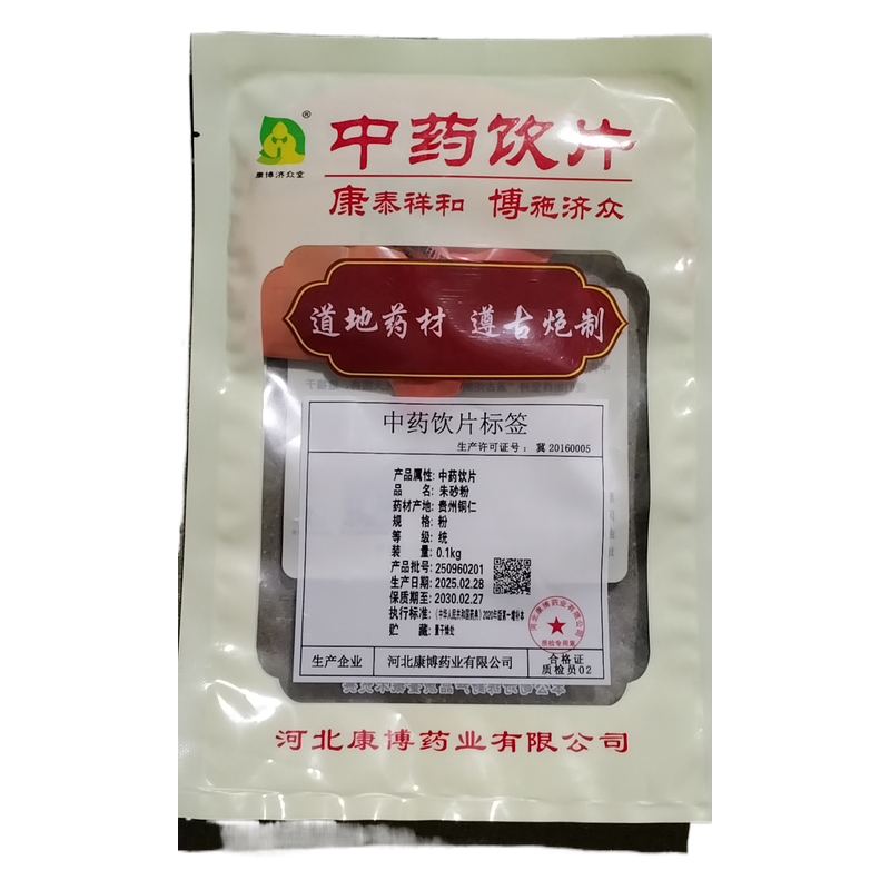 会员可见朱砂粉河北康博药业有限公司规格:0.1千克/袋效期:2030-02-27 件装量:9999库存:充裕 中包装:1