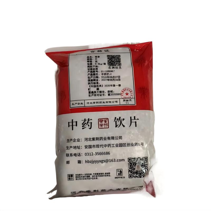 会员可见党参河北紫荆药业有限公司规格:0.5千克/袋效期: 件装量:30库存:充裕 中包装:1