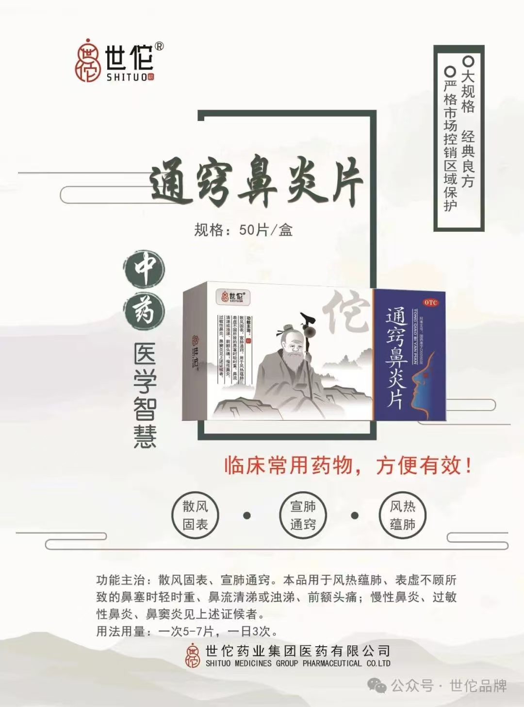 会员可见通窍鼻炎片通化吉通药业有限公司规格:0.33g*50片效期:2028-08 件装量:200库存:充裕 中包装:1