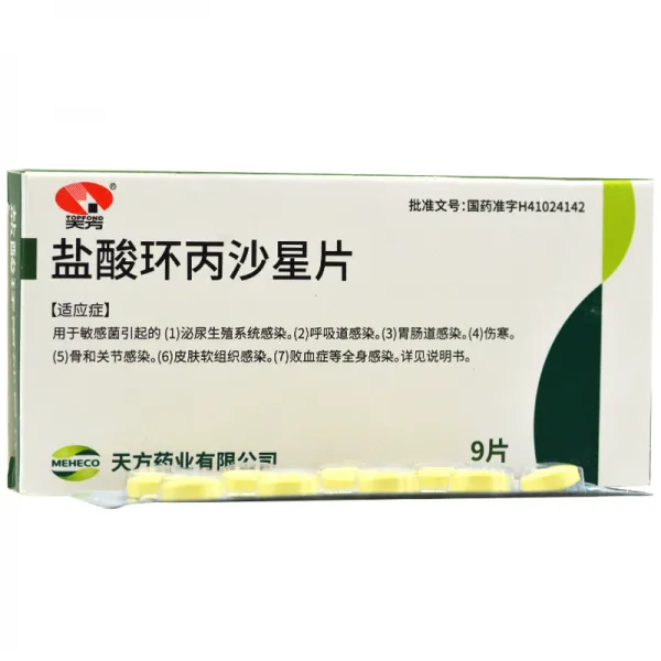 会员可见盐酸环丙沙星片天方药业有限公司规格:0.25g*9片效期:2027-09 件装量:900库存:充裕 中包装:10