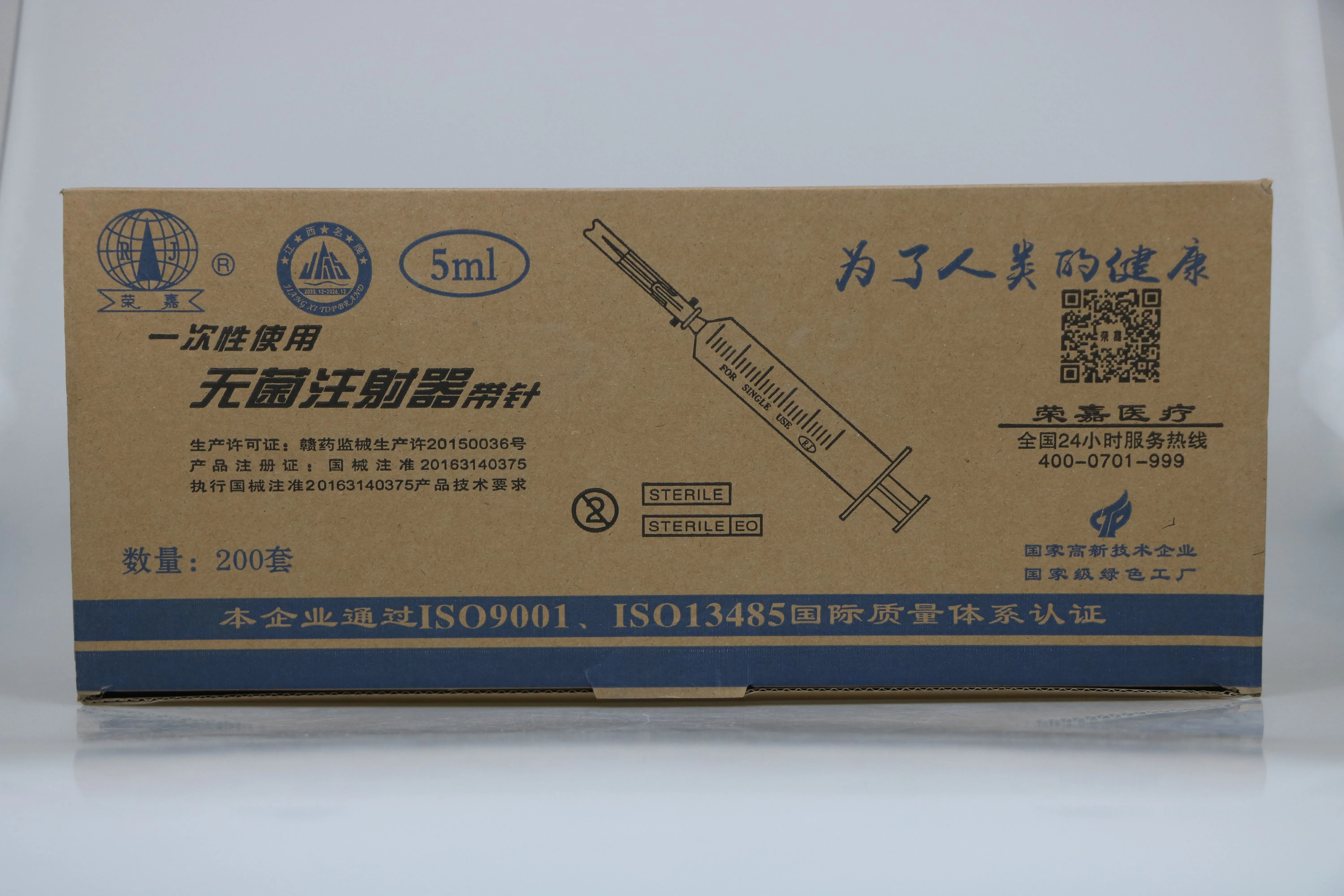 会员可见一次性使用无菌注射器 带针荣嘉医疗科技(集团)有限公司规格:5ml 0.7*30 TW.LB效期:2027-12-21 件装量:1800库存:充裕 中包装:200