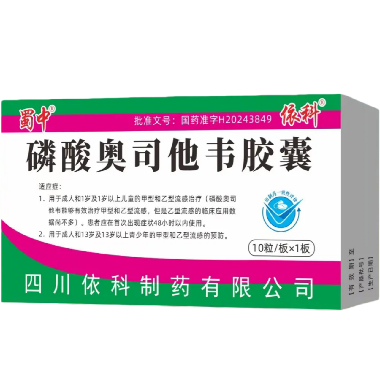 会员可见磷酸奥司他韦胶囊四川依科制药有限公司规格:75mg*10粒效期:2028-11-08 件装量:300库存:充裕 中包装:1
