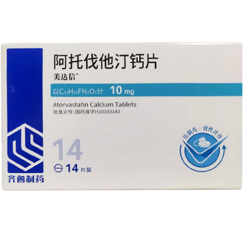 会员可见(带量采购)阿托伐他汀钙片齐鲁制药(海南)有限公司规格:10mg*14片效期:2027-09-10 件装量:320库存:充裕 中包装:10