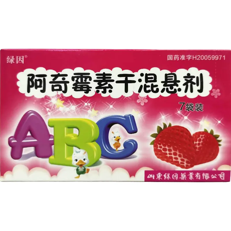 会员可见*阿奇霉素干混悬剂山东绿因药业有限公司规格:0.1g*7袋效期: 件装量:400库存:充裕 中包装:12