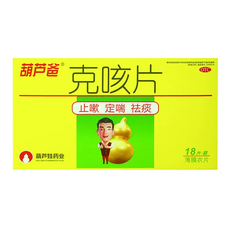 会员可见克咳片海南葫芦娃药业集团股份有限公司规格:0.46g*18片效期: 件装量:300库存:充裕 中包装:1