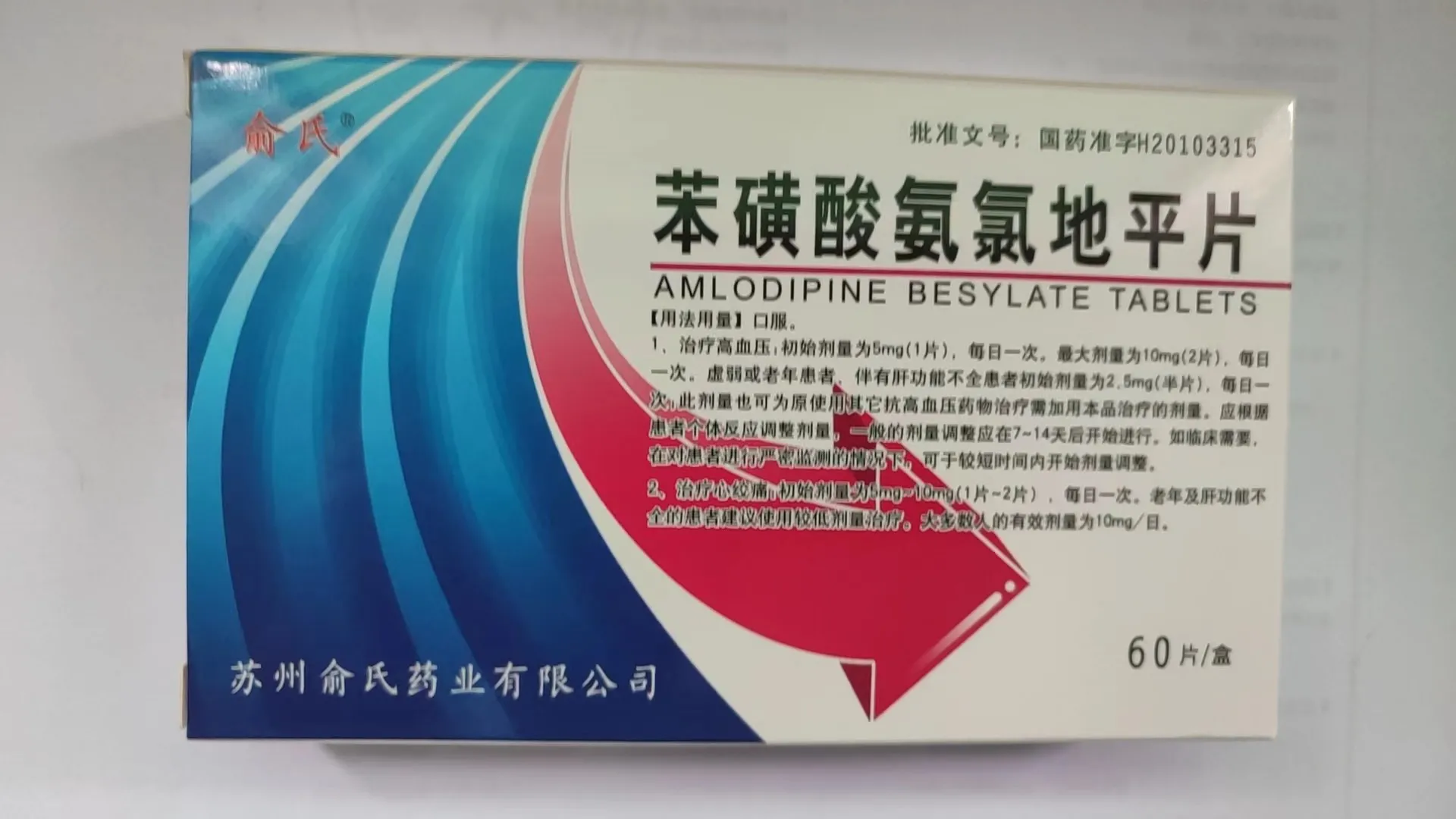 会员可见苯磺酸氨氯地平片苏州俞氏药业有限公司规格:5mg*60片效期:2027-09-04 件装量:400库存:充裕 中包装:1